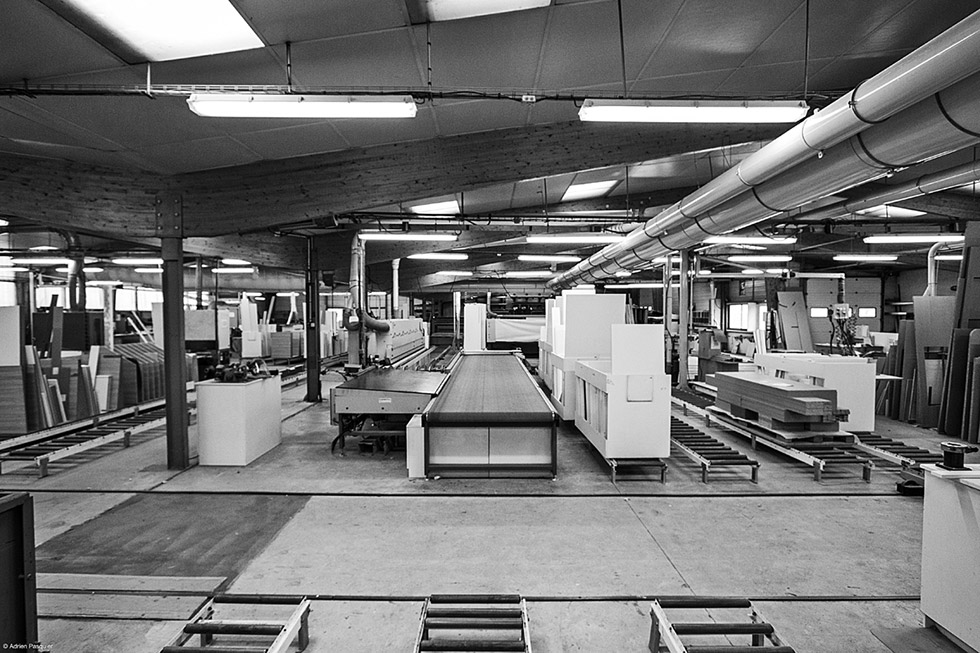 2000m2 d’ateliers sont disponibles pour la découpe et l’usinage des pièces élémentaires, l’application par les Vernisseurs-laqueurs (préparation des pièces, application des teintes, des vernis, des laques, des huiles), le façonnage par les Menuisiers-ébénistes (collage et assemblage des éléments fabriqués, montage des corps de meuble, intégration des systèmes mécaniques).